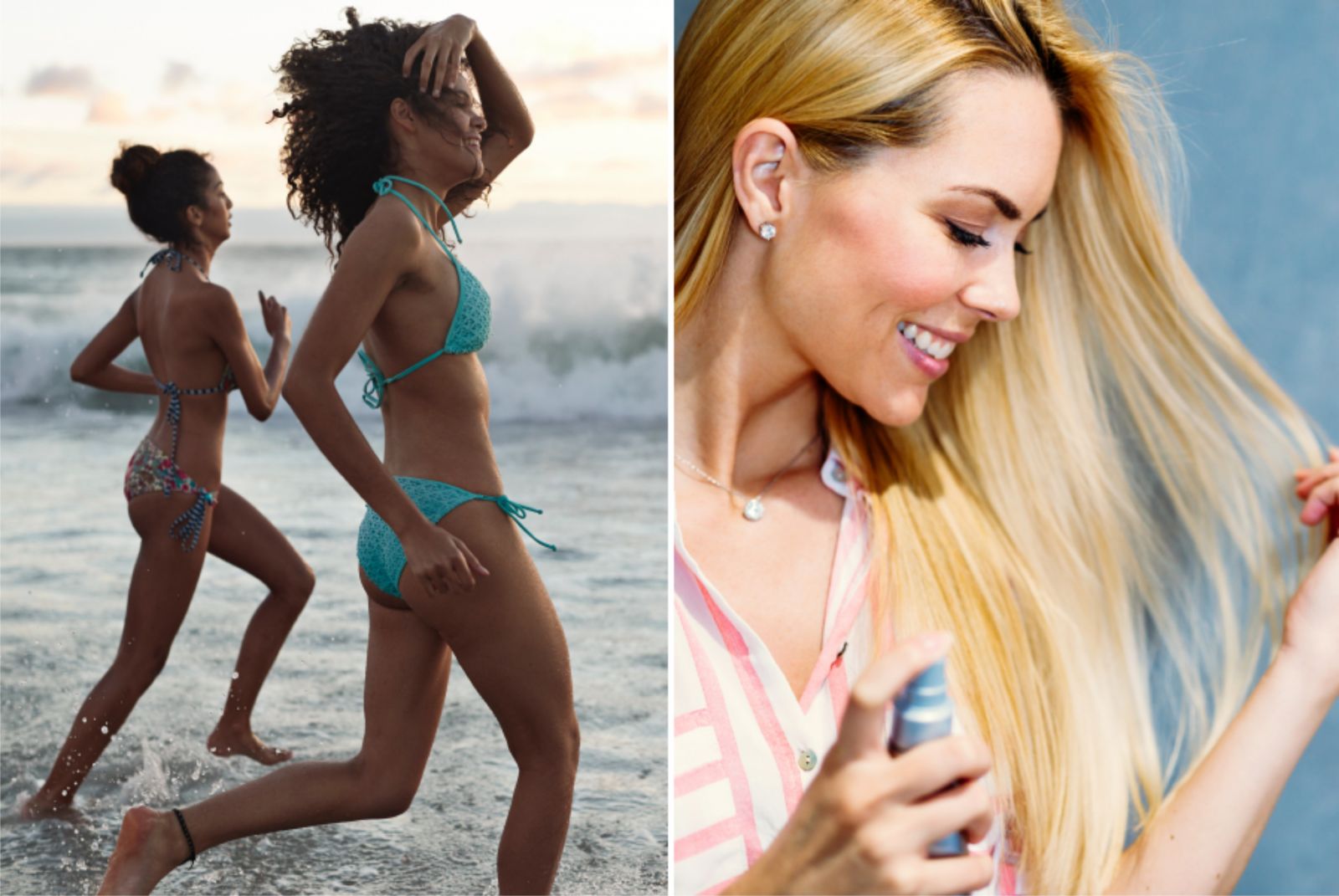 海邊通常伴隨著海風、烈日跟海鹽,因此頭髮會同時受到三種傷害,可以在去海邊之前,使用抗UV的噴霧或護髮商品,為髮絲做好基礎護理,讓頭髮傷害降低,染過的頭髮也比較不容易褪色。