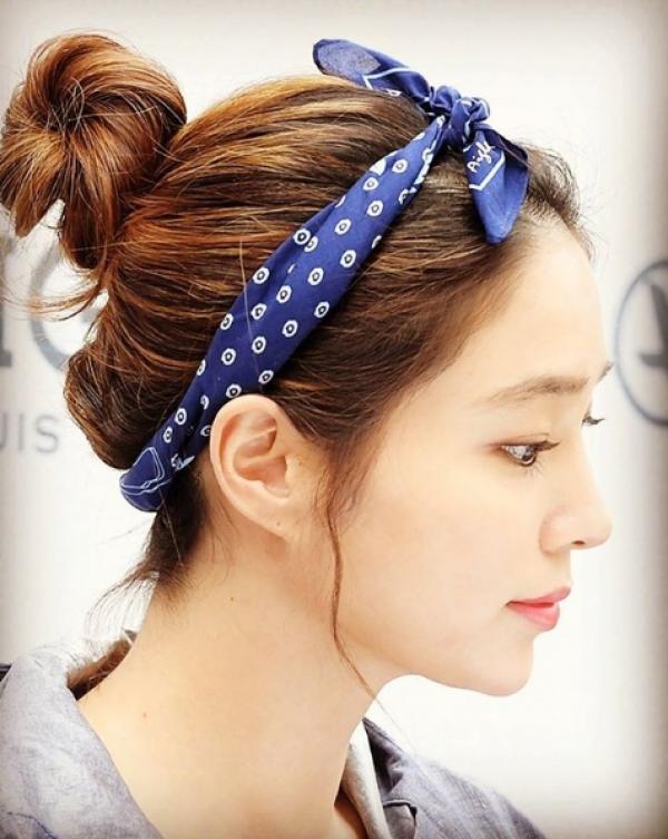 長髮專屬的丸子頭配上圖騰髮帶,永遠看不膩的百搭