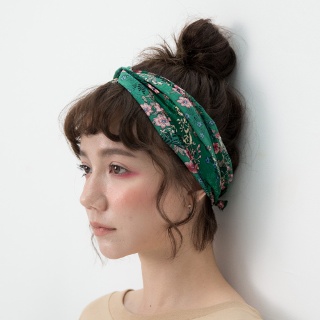 印花髮帶和流行的外翹卷髮,展現韓系的歐逆知性性感