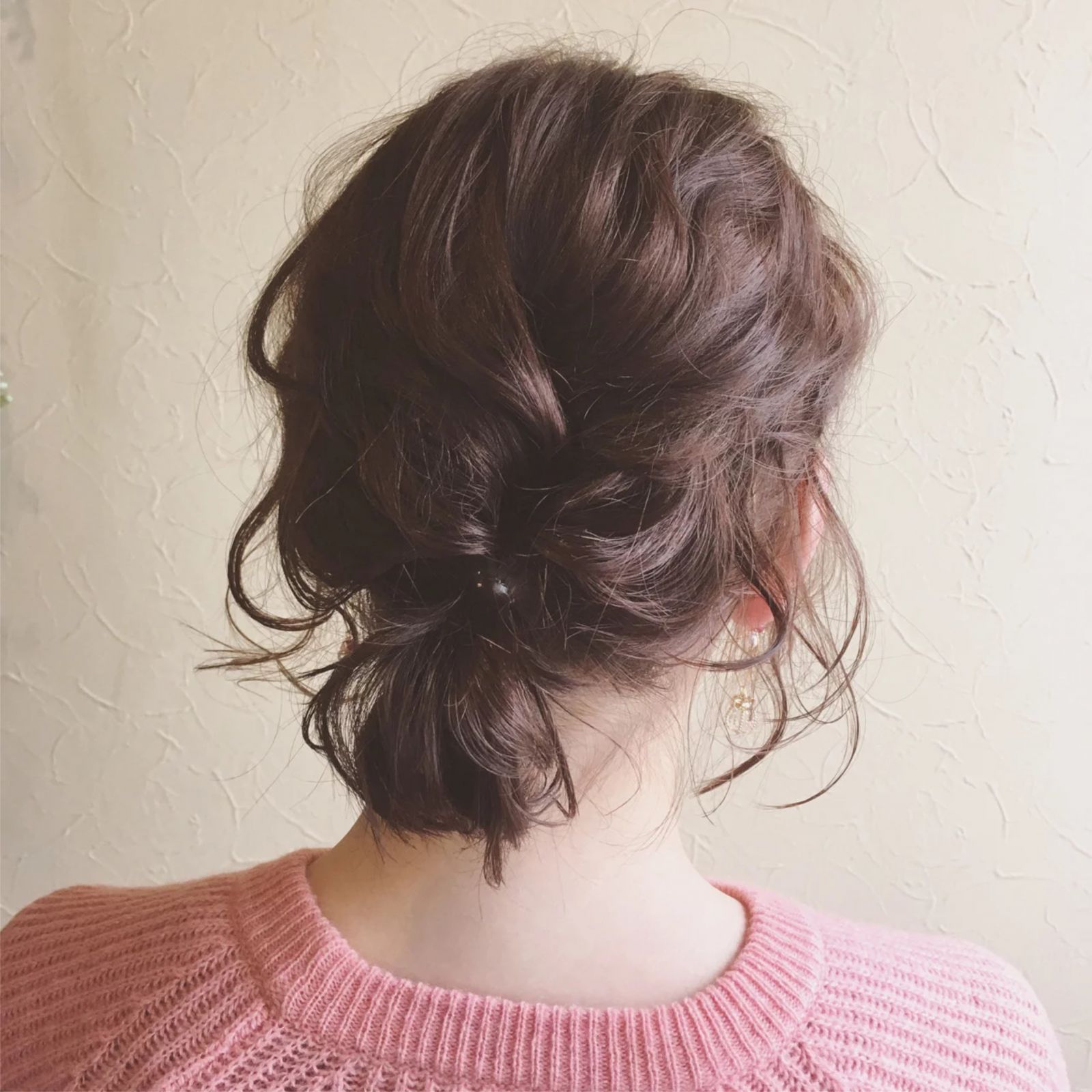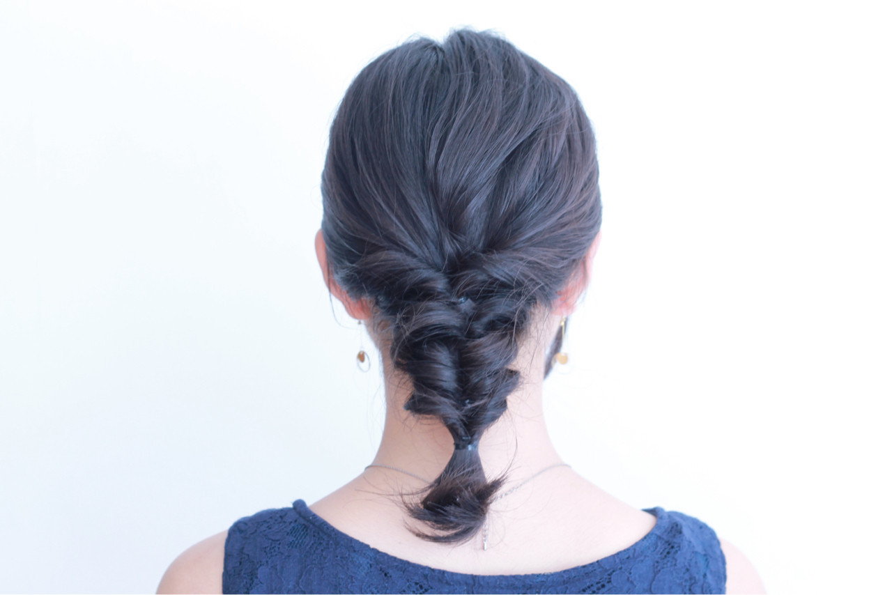 在後頸位置,只取髮梢部分往內側盤一個翻轉髮髻!即使是短髮也可以簡單盤成功唷。