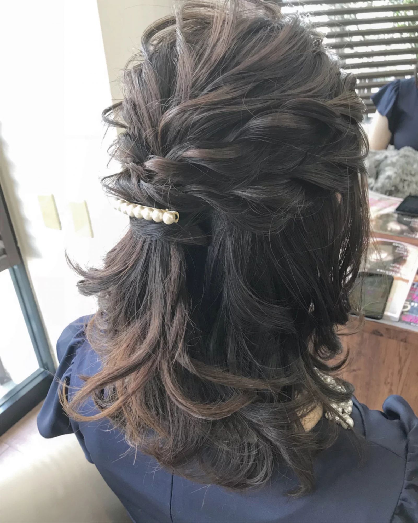 長長的前髪也和兩側的頭髮一起編成辮子!能讓黑髪看起來顯得輕盈。