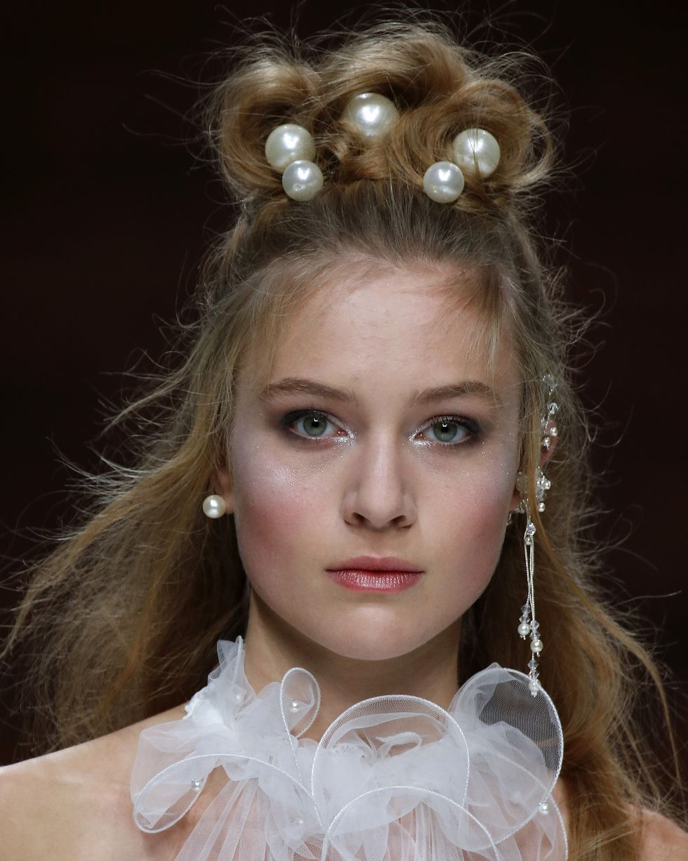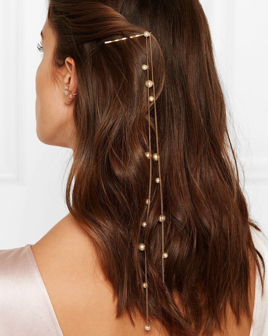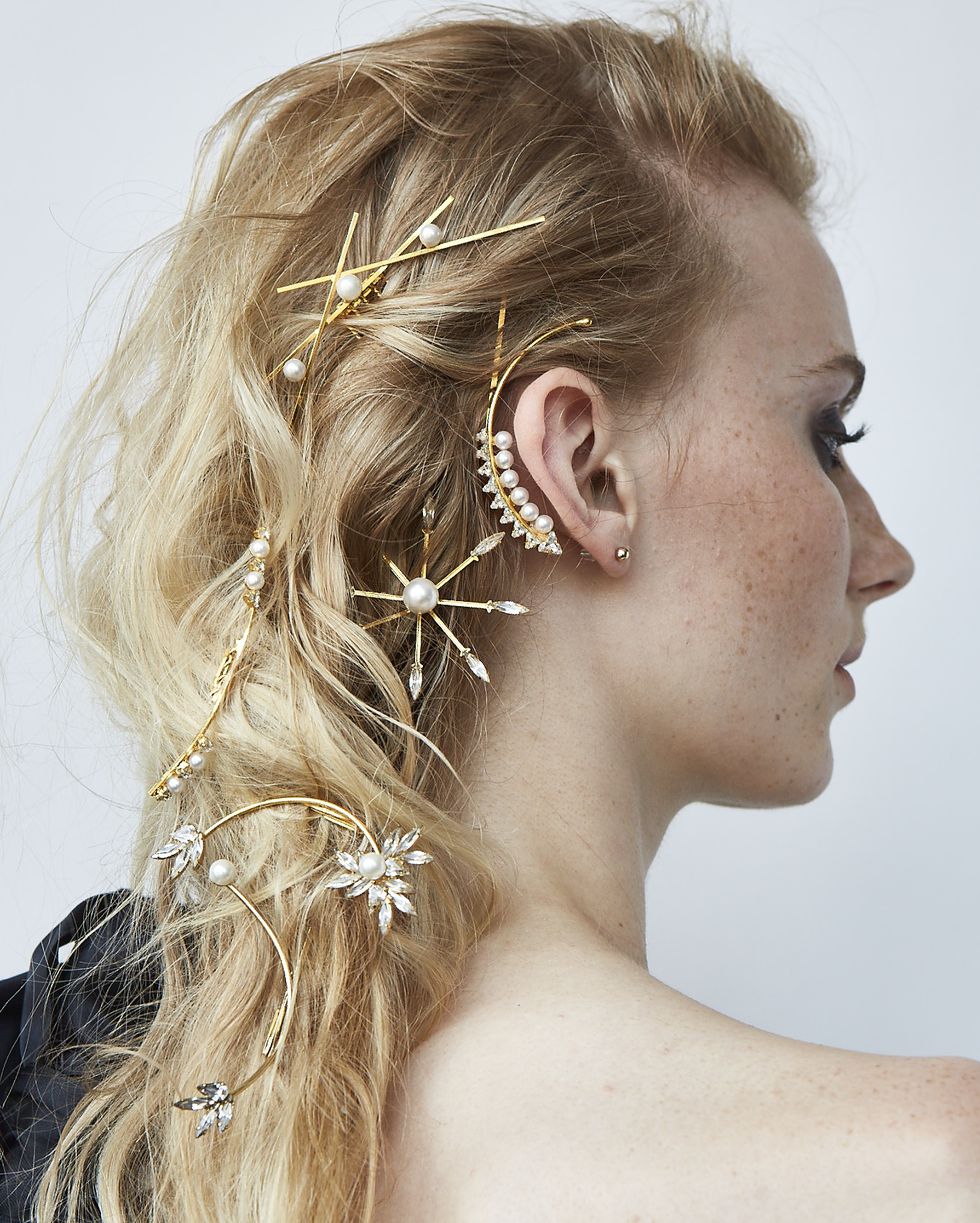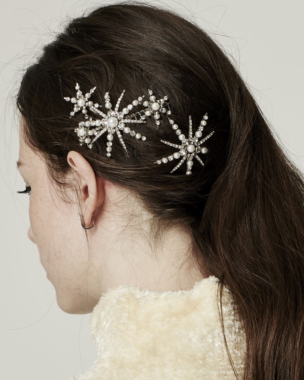 用不同大小的珍珠髮夾和髮箍,營造出大珠小珠落玉盤的模樣,配上一頭刻意的亂髮,簡直是不經意的最高等級。