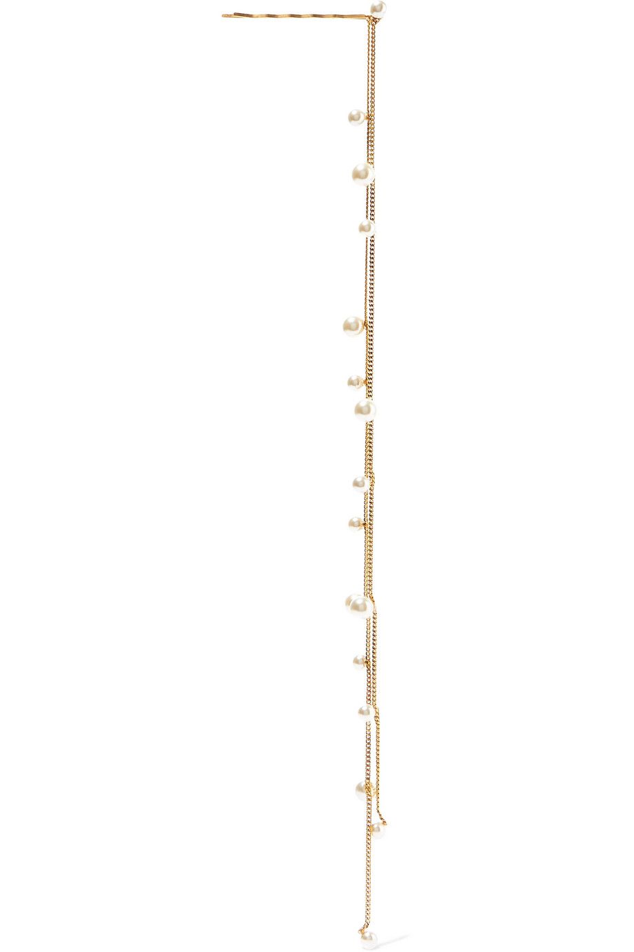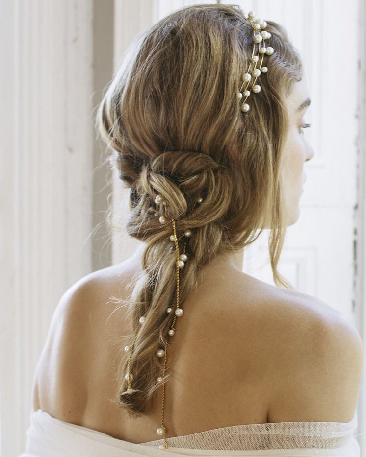 髮圈和串鍊都只挑單顆珍珠裝飾的,雖然一個頭上一個在髮尾,也有統一感,而且還有水珠流瀉而下的美感,Jennifer Behr這種非常適合鬆軟的髮辮。