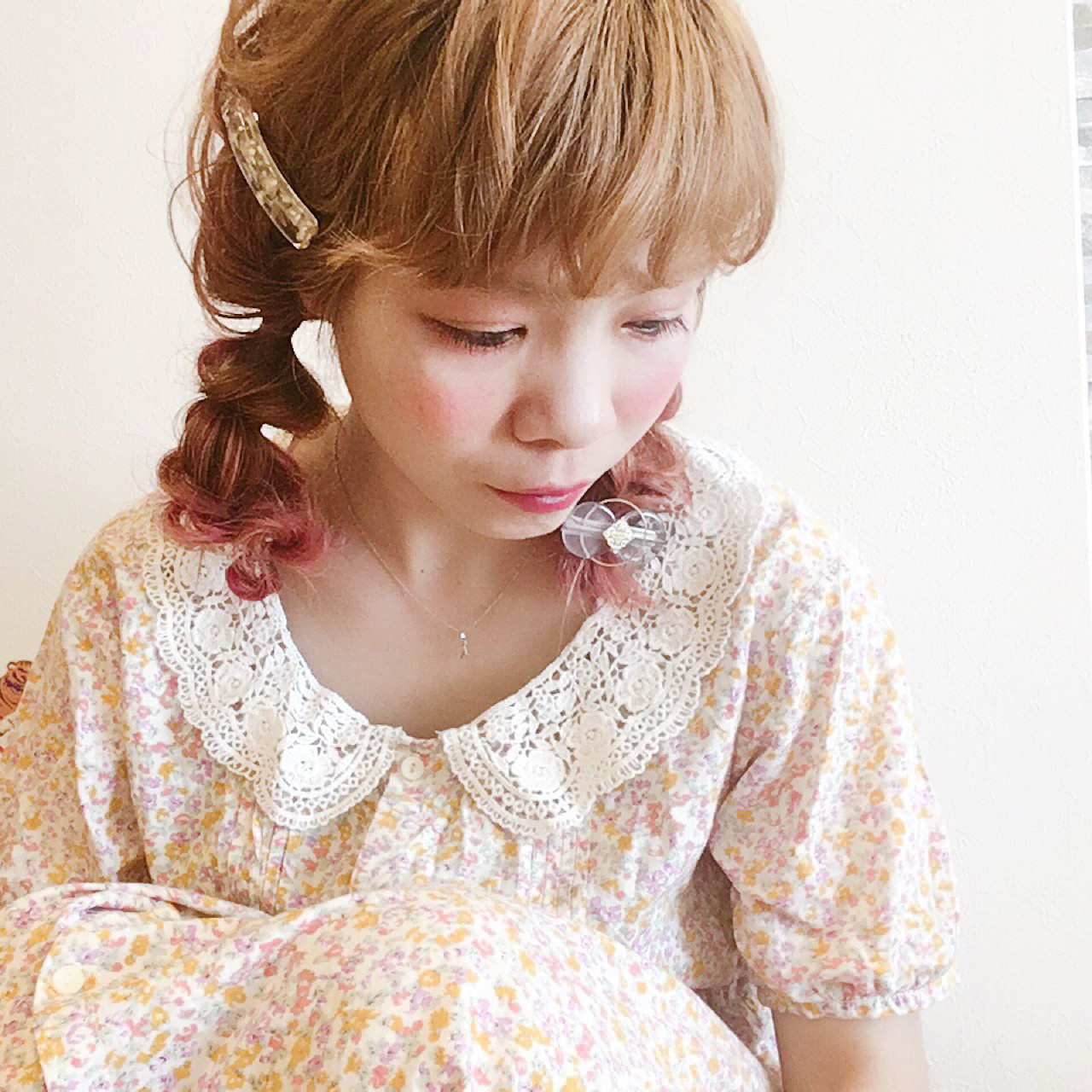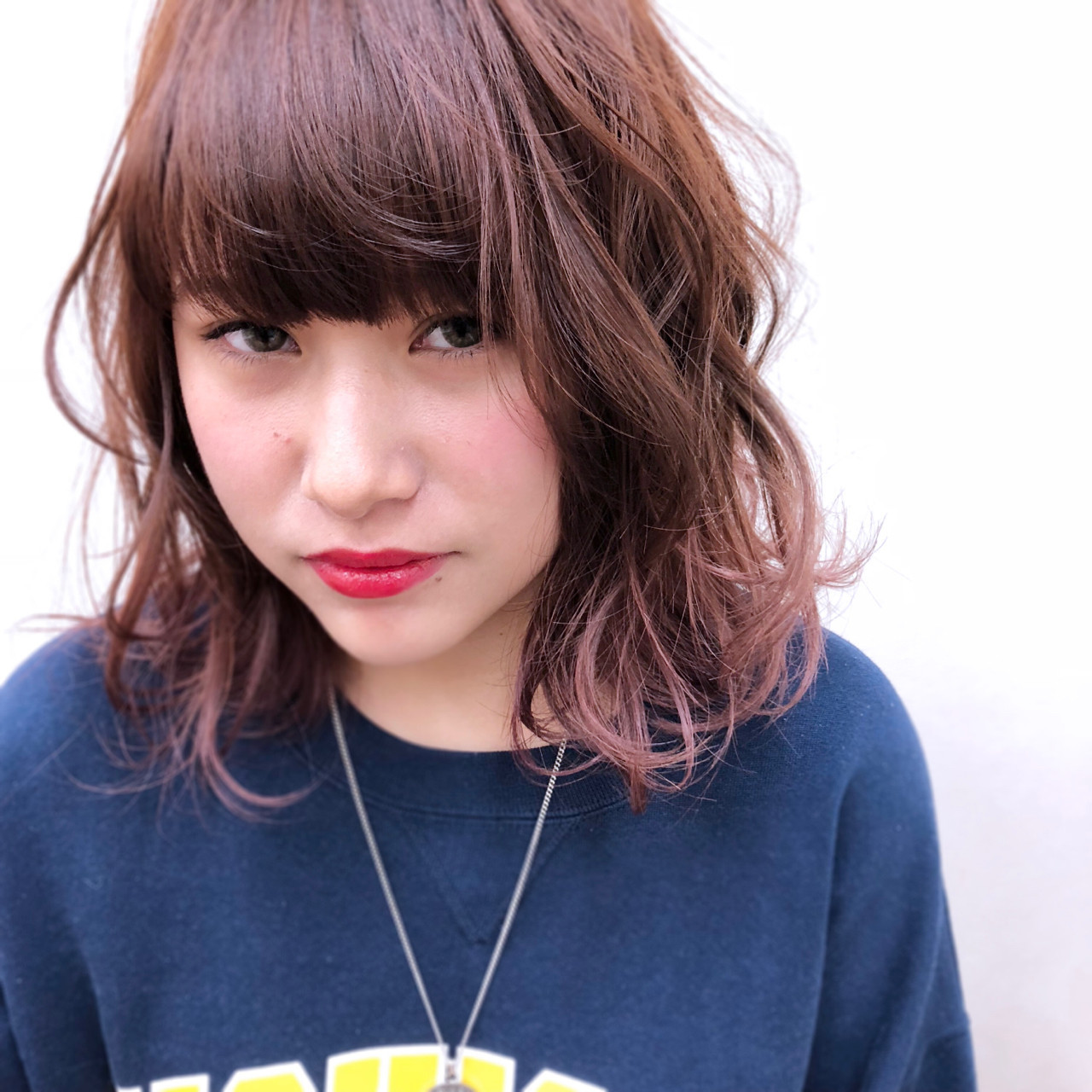 和可愛粉紅髮色堪稱絕配的中長髮型。即使開始留長,也能呈現出自然感覺的少女髮型!