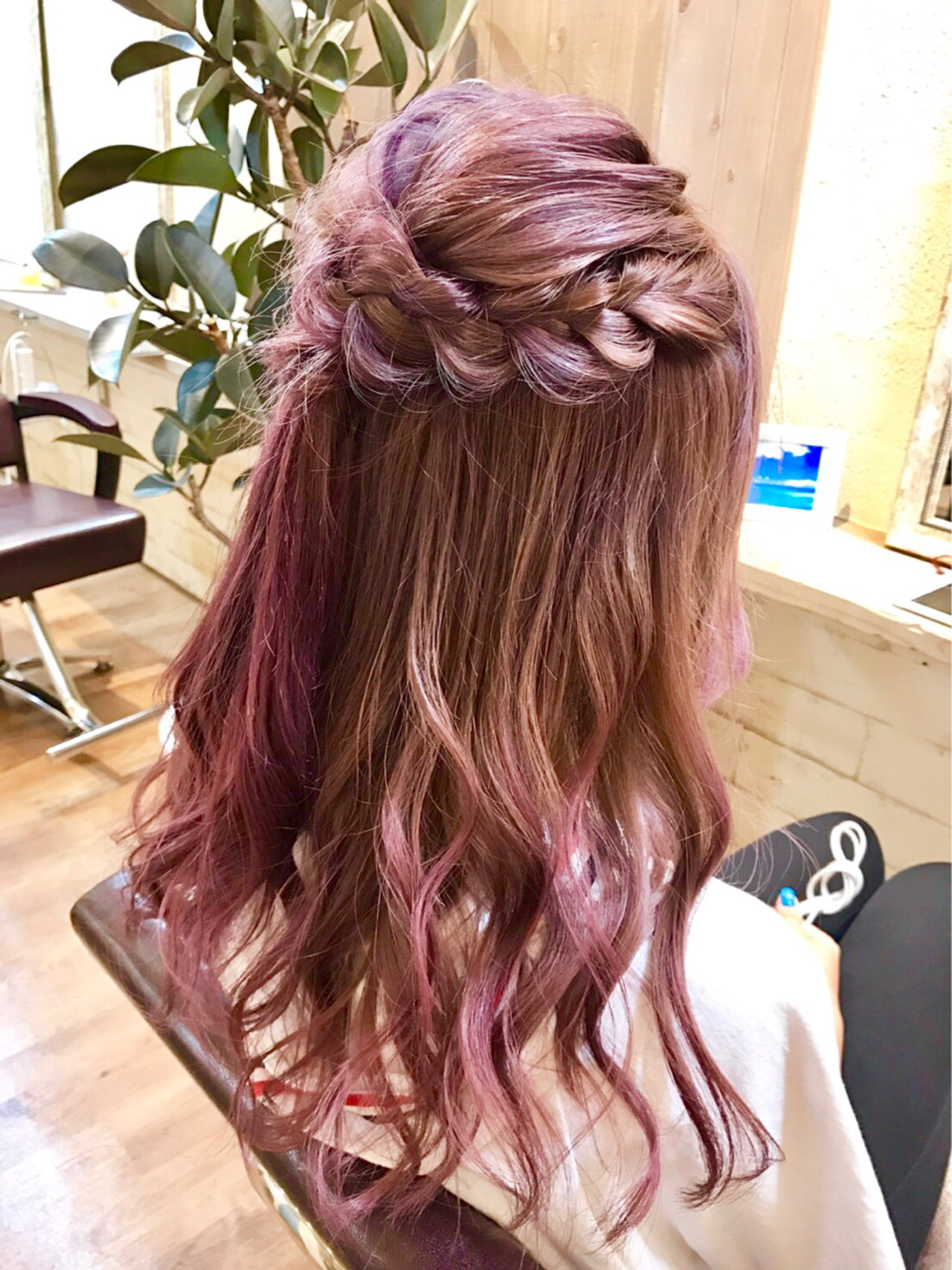 長髮就利用明亮的粉紅漸層色來提升透明感♡上半部的繩狀編髮散發出柔和的女人味♡