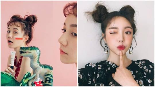 (左)model夏曼娣的丸子頭,青春甜美,是凡人也可以駕馭的羊咩咩感~