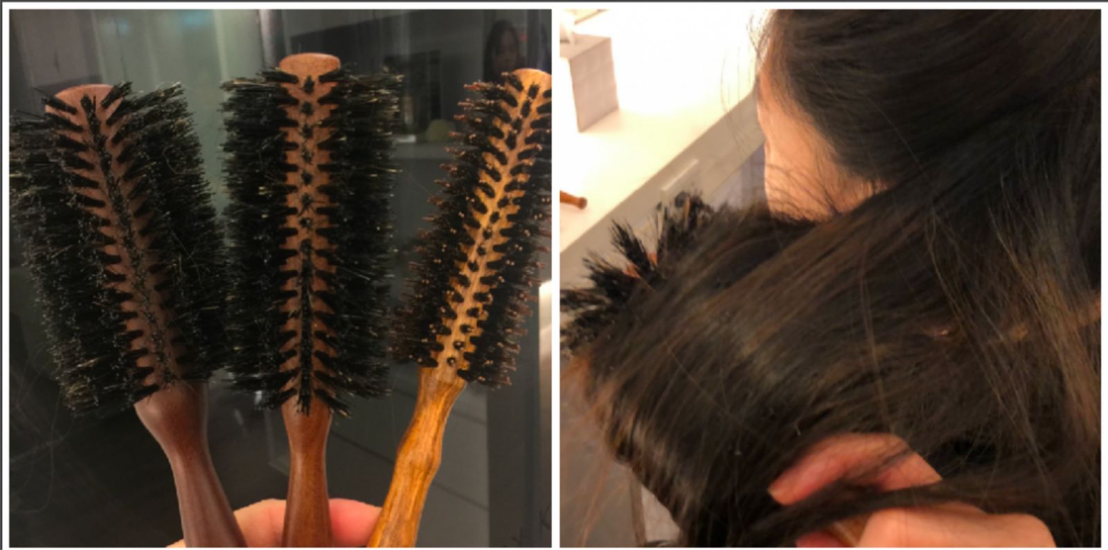 自己在家吹頭髮,目的就是快速把頭髮吹乾,所以很多人都會用手指一邊吹,一邊撥弄,直到乾為止,這樣的頭髮就是順乾而已,不會有光澤感,更不會做到你夢寐以求的直順。髮型師在沙龍裡吹整頭髮,最厲害的武器,就是圓梳,圓梳有分大小,是根據頭髮的多寡與長短,頭髮越長圓梳的直徑就越大。倪萱設計師Lulu甚至說:「髮型師其實都還有『養梳』的習慣,因為新的梳子齒梳比較硬、沒有彈性,不容易包覆頭髮進行吹拉,所以新梳子最好都自己先用幾次養梳,等到齒梳柔軟後,再拿來進行吹整。」