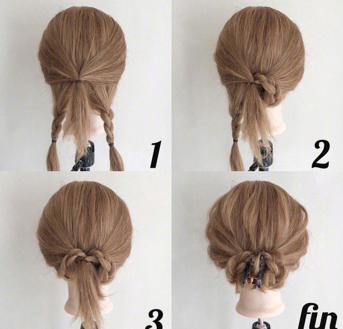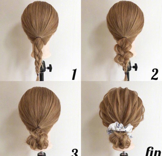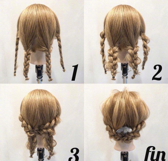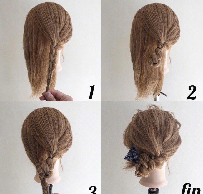只要一側綁個三股辮捲起來,另一邊也編起三股辮再扭在一起綁好就完成了!