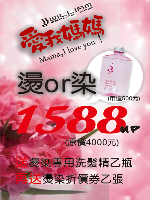 除了超級優惠的折扣外 更加碼贈送燙染專用洗髮精!