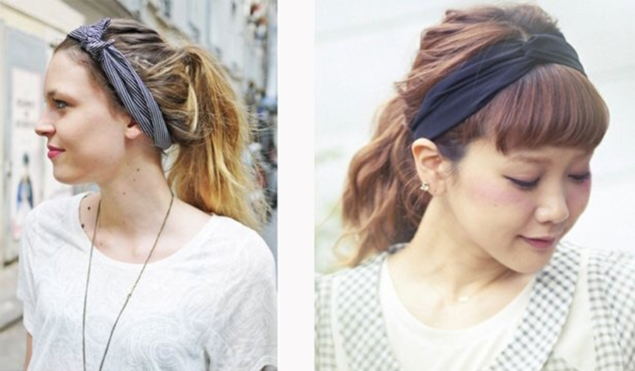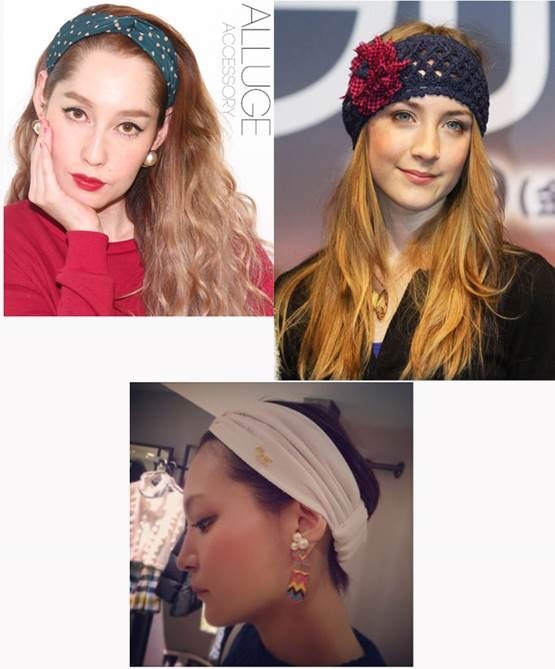 起來有瘦臉的效果,也很適合戴上造型款耳環。粗一點的髮帶用戴帽子的方式