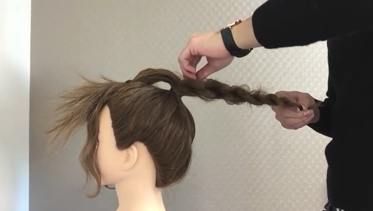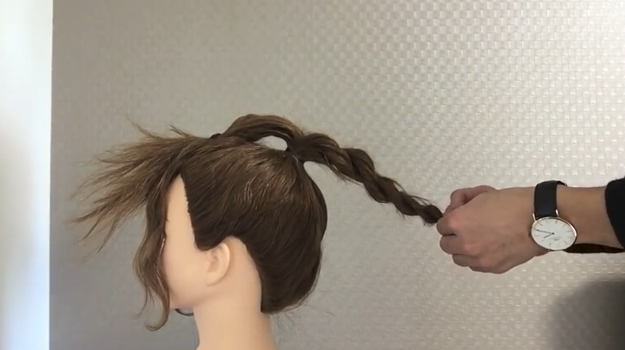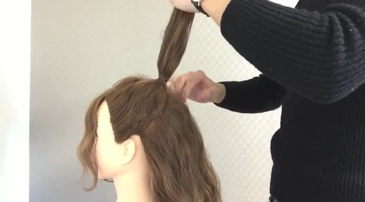 5.將A沿著馬尾根部纏繞並用小黑夾固定